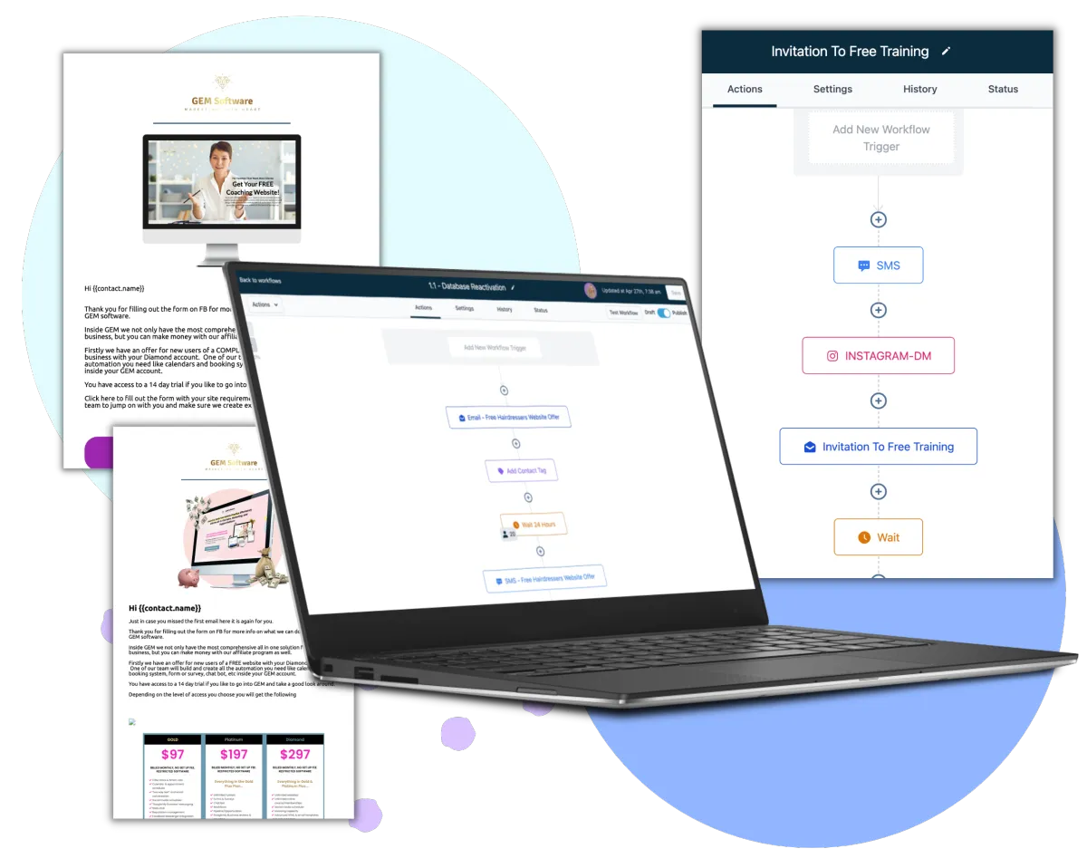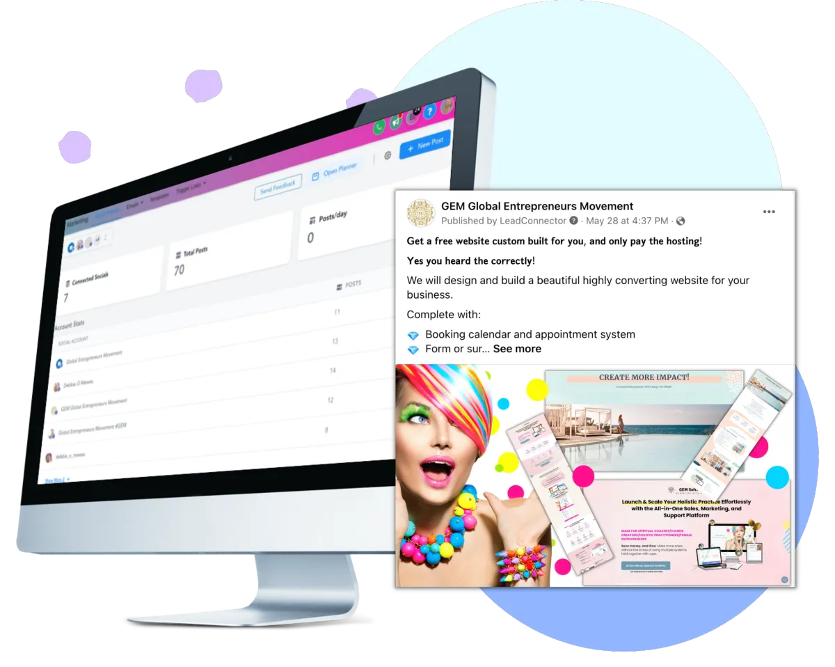 We open your own account in our all-in-one software and give you access to unique features which will allow you to cancel all existing CRM's, email, text services, funnel/website builders, social media schedulers,